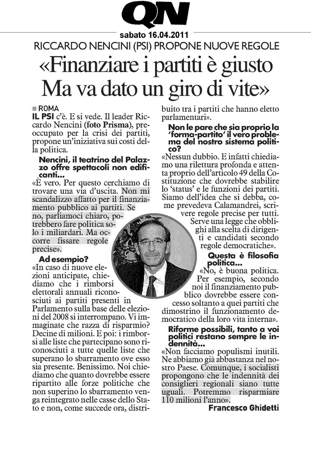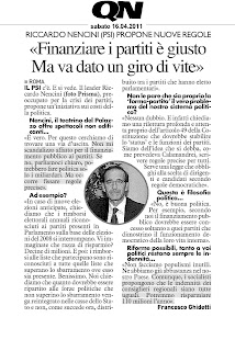 ho letto con interesse l'intervista a Nencini e, devo dire, la trovo interessante sotto molti aspetti anche se timida e carente sotto altri. in particolare, mi piacerebbe sapere cosa sostiene il psi riguardo ai costi legati alla politica ma non direttamente ai partiti. mi riferisco, nello specifico, ai costi dei vitalizi (o pensioni che dir si voglia) che i consiglieri regionali ottengono dopo un mandato; alle pensioni di anzianità dei parlamentari, ottenibili dopo appena due anni e mezzo di "servizio", ai loro innumerevoli benefit.